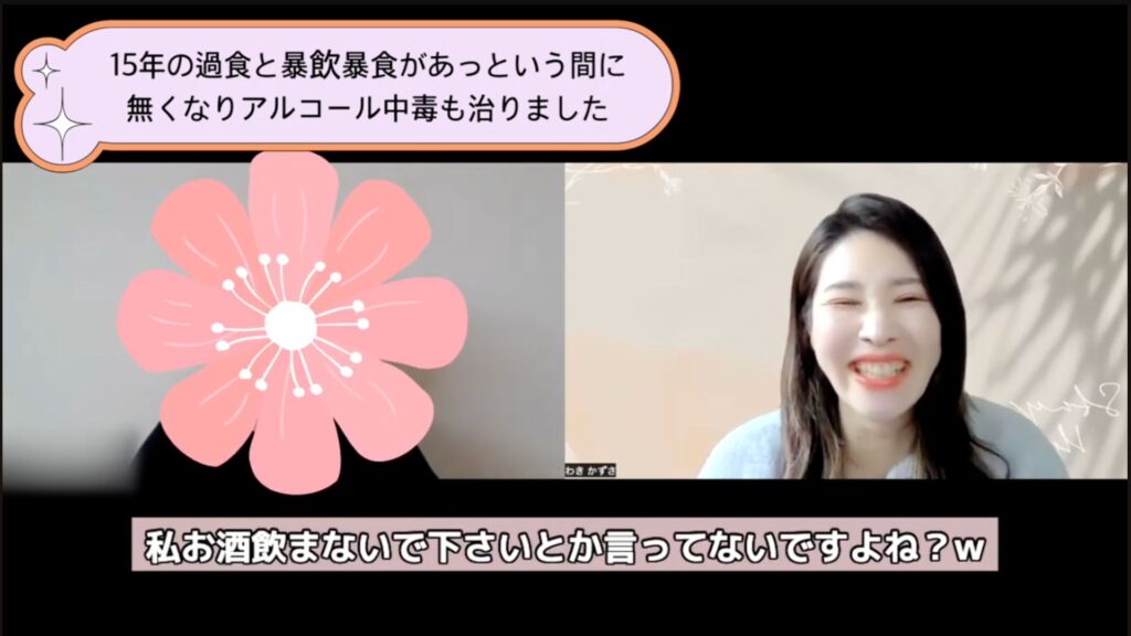 • 【変化】 ダイエットの話をほぼしていないのに、長年の過食もお酒の執着も消えました。
